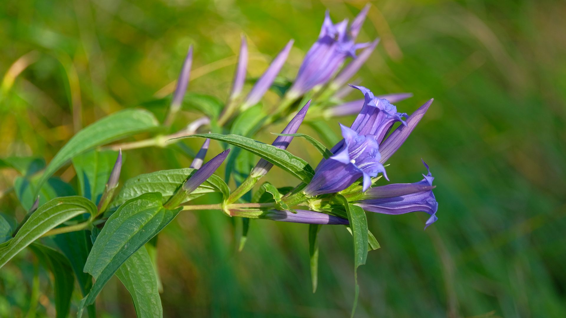 Purple Gentian Flowers in Sunlight